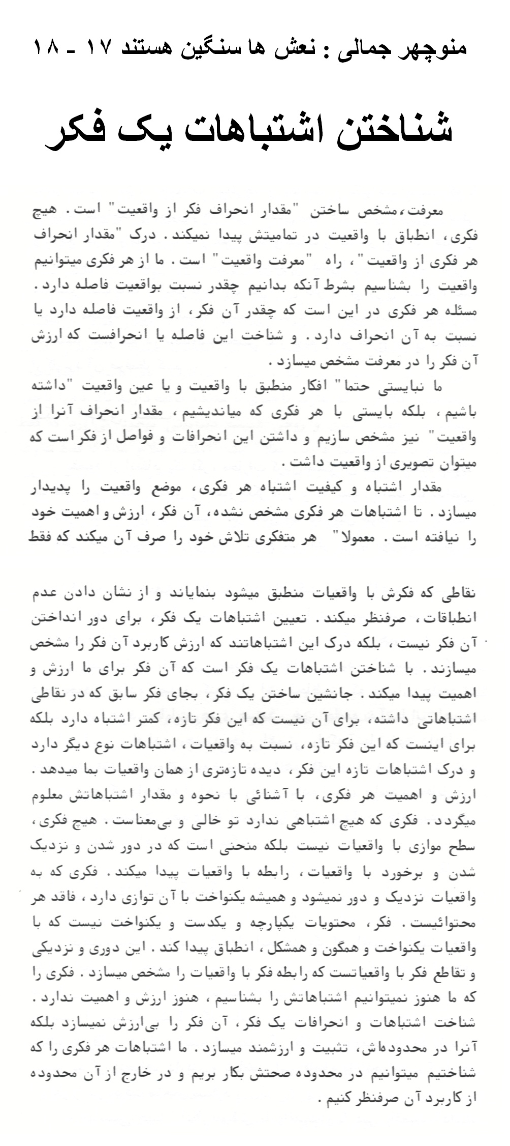 دستهها از نو سبز و تازه شویم منوچهر جمالی : نعش ها سنگین هستند ۱۷ – ۱۸ – شناختن اشتباهات یک فکر نویسندهٔ نوشته از Palang LY تاریخ نوشته آگوست 5, 2011 هیچ دیدگاهی برای منوچهر جمالی : نعش ها سنگین هستند ۱۷ – ۱۸ – شناختن اشتباهات یک فکر ثبت نشده منوچهر جمالی : نعش ها سنگین هستند ۱۷ – ۱۸ شناختن اشتباهات یک فکر ← اندیشه هائی از منوچهر جمالی — 206 – 207 → رضا علوی : هستی و چیستی تراژدی شصت و هفت دیدگاهتان را بنویسیدبرای نوشتن دیدگاه باید وارد بشوید.