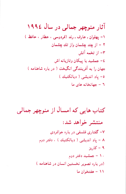 کتابهائی که از منوچهر جمالی برای فروش موجودند